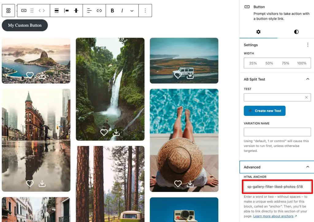 - The default action available is sp-gallery-filter-liked-photos-{ID}.