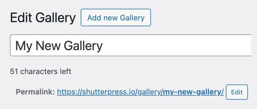 Each gallery has its own unique permalink or page, which is shown directly beneath the gallery title. Clicking the link opens the gallery page where visitors can view it exactly as configured.